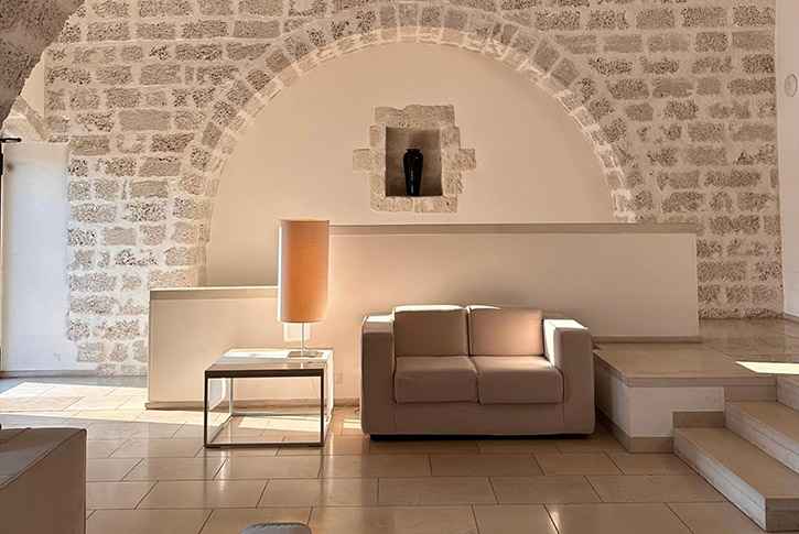 Relais Histò San Pietro sul Mar Piccolo (Via Santandrea Circummarpiccolo, 74100 Taranto TA, Italy) is not your typical hotel. Built into a beautifully restored 14th-century monastery and surrounded by olive trees, the property sits above the Mar Piccolo, offering panoramic views of the bay. It’s a place where you can sip espresso under an ancient stone archway while your children are safely playing in a nearby garden.